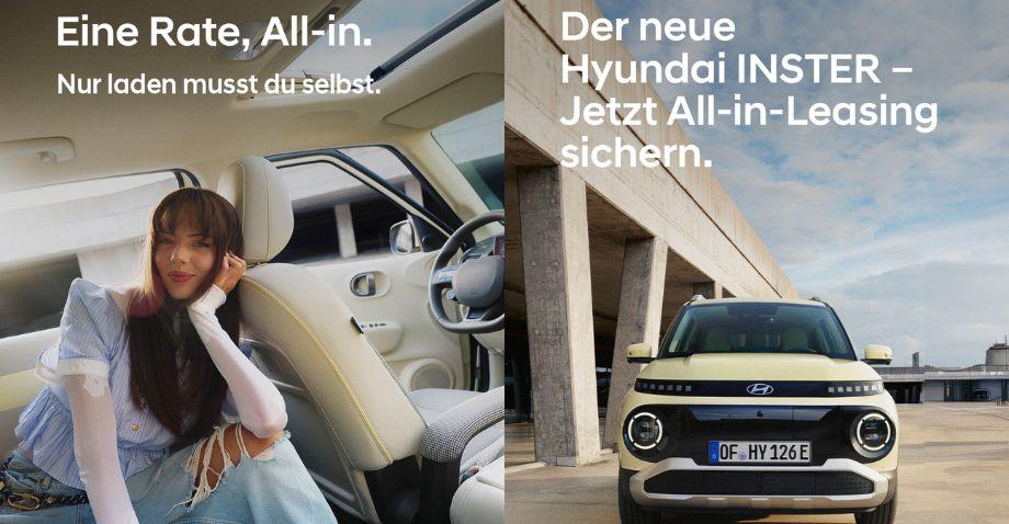 1  Ein unverbindliches Leasingbeispiel für Privatkunden der Hyundai Leasing, ein Service der Allane SE, Parkring 33, D-85748 Garching bei München. Bonität vorausgesetzt. Nach den Leasingbedingungen besteht die Verpflichtung zum Abschluss einer Vollkaskoversicherung. Hyundai KONA Select 1.0 T-GDI 85 kW (115 PS), einmalige Leasingsonderzahlung 2.686,03 EUR, Laufzeit 48 Monate, Gesamtlaufleistung 40.000 km. Kostenpflichtige Zusatzausstattung möglich. Zuzüglich Überführungs- und Auslieferungskosten. Alle Preise inkl. gesetzlicher MwSt. Angebot gültig bis 31.12.2025.