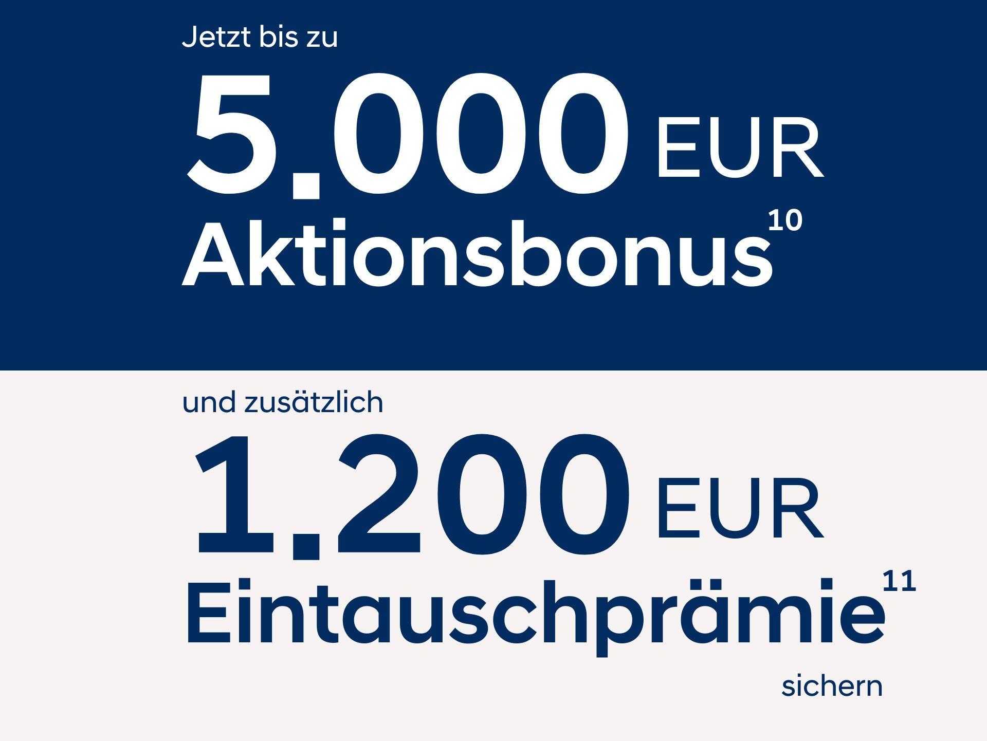 Sichere dir jetzt den Aktionsbonus von bis zu 5.000 EUR10 und zusätzlich auch noch 1.200 EUR Eintauschprämie11 für unsere Top-Modelle.
